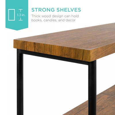 Your books and photos deserve a place to call home. This multipurpose bookshelf features a modern, industrial-style, open design, combining durable MDF boards with a heavy-duty, solid steel framing. Strong 1.3-inch shelves and a thick engineered wood design can hold books, candles, and decor and support weights up to 220 pounds. Arrange your favorite memories and memoirs with security and style with this multipurpose bookcase that can be used in a variety of rooms as a library, pantry, display shelf, and more! There’s plenty of storage space inside with 5 large, strong shelves that provide plenty of room to organize books, toys, or decor up to 13.5-inches tall. Your sturdy shelves are ready to use with an easy-assembly process; just set up your metal columns, attach your wooden boards, and enjoy your new shelf! Product Specifications: Overall Dimensions (31.5in x 14in x 62.75in or 80cm x 35.6cm x 159.4cm)