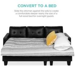 Best Choice Products Convertible Living Room Linen Fabric Tufted Split-Back Futon Sofa W/ 2 Pillows